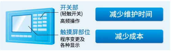 对于在生产现场中日益广泛使用的触摸屏,其操作频繁的部位容易损坏,且损坏一处就需要更换整个面板。对于这个难题,通过使用轻触开关,可提高耐久性,仅更换故障开关即可,既减少了工时,又节省了成本。