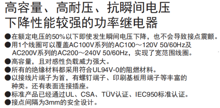 以下我们来了解下欧姆龙G7L继电器的特点: