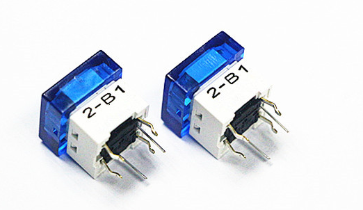 带灯轻触开关每个led灯都有一个灯脚标注颜色,带颜色的这个灯脚代表led的负极。灯脚上面标注的颜色即带灯轻触开关发光的颜色,常见的灯颜色有:红色、蓝色、绿色、白色、黄色。