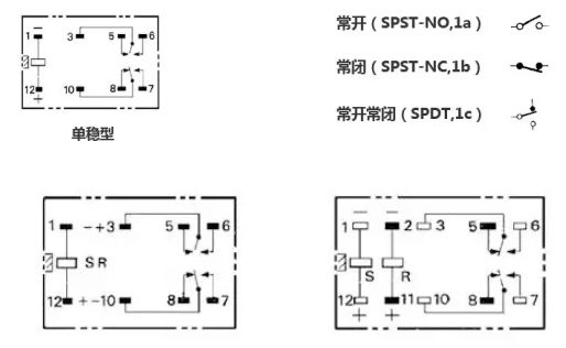 ③ 接点结构:2c(双刀双掷)、4c(四刀双掷)、1a、1b等