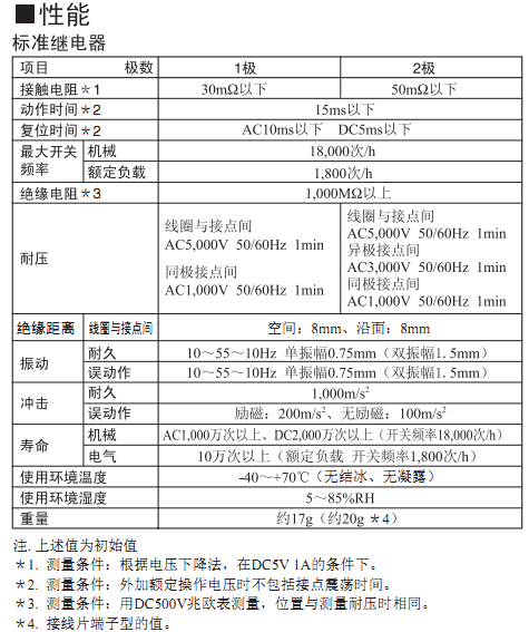 1极10A、2极5A的通用型功率继电器
