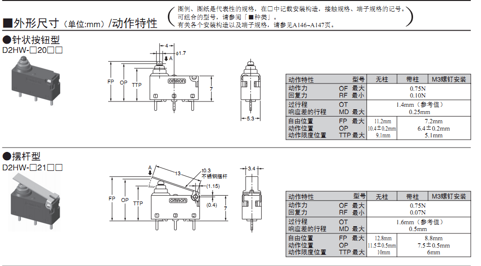 没有摆杆也同样使用方便的长行程规格 (OT参考值 :1.4mm)