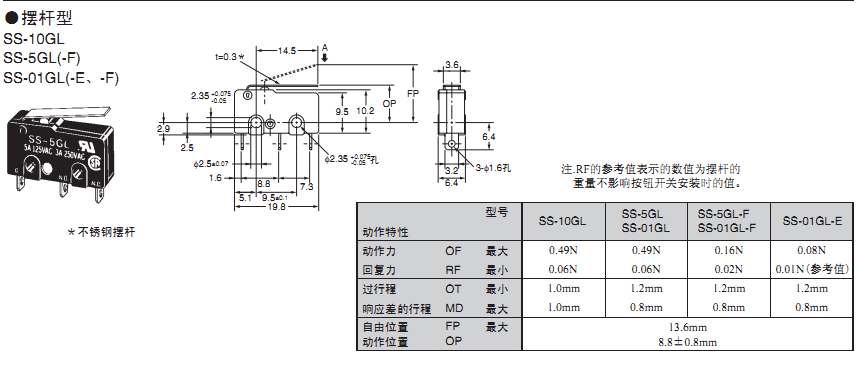 欧姆龙微动开关,SS-5GL,欧姆龙微动开关SS