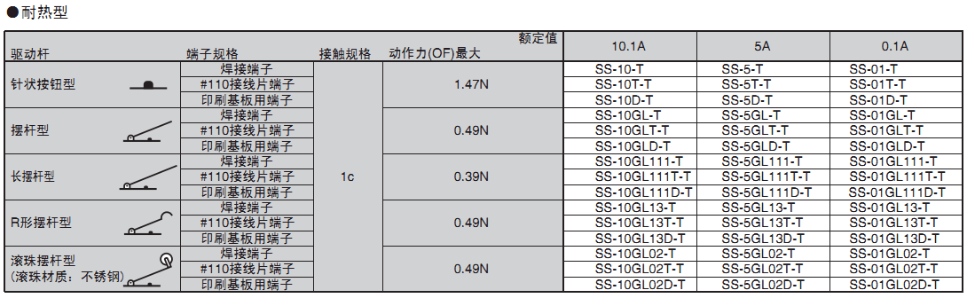 备有0.1A~10.1A型的各个品种,产品规格齐全,是欧姆龙畅销的微动开关。