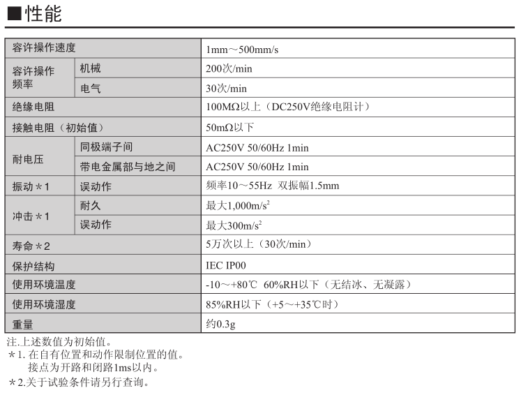 欧姆龙超小型(高6×宽8×深4.2mm)、轻量(约0.3g)、3mm的长行程。