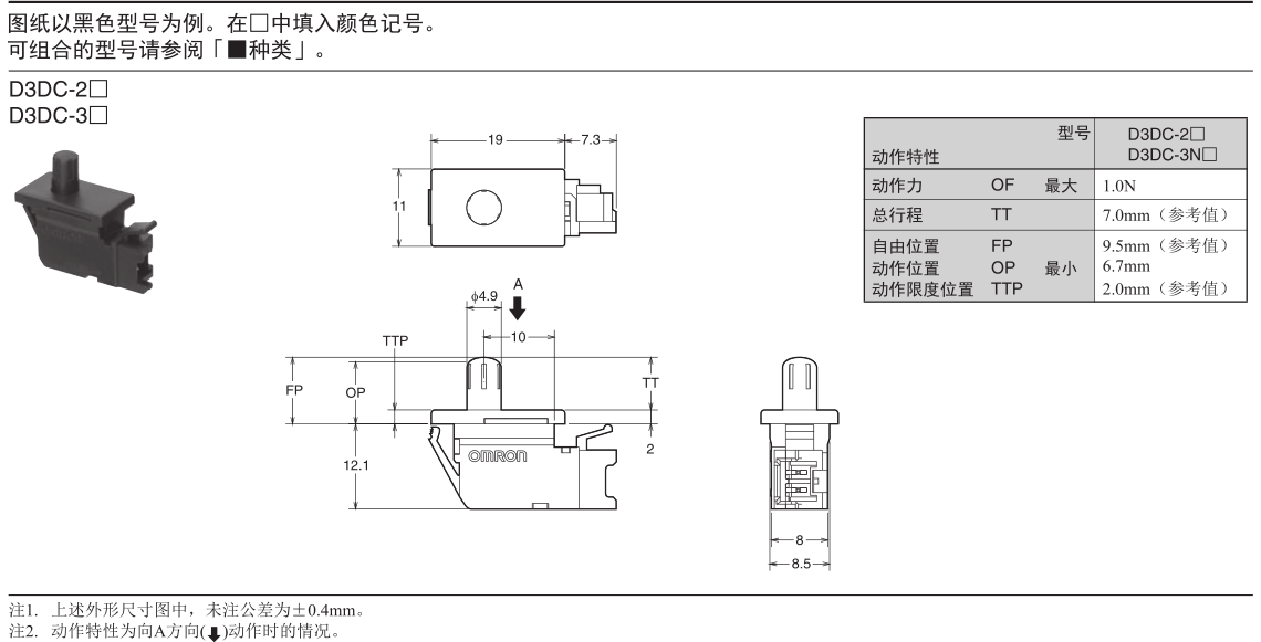 欧姆龙门用/电源开关, D3DC-2,欧姆龙门用/电源开关D3DC