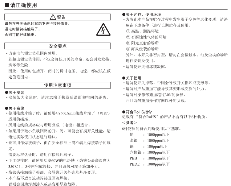 欧姆龙门用/电源开关, C4V-821A,欧姆龙门用/电源开关C4V