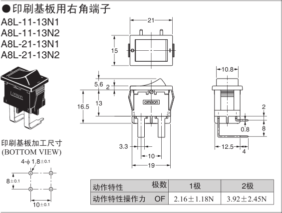 欧姆龙船型开关,A8L-21-13N1,欧姆龙船型开关A8L