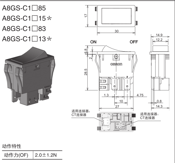 欧姆龙船型开关,A8GS-C1185,欧姆龙船型开关A8GS