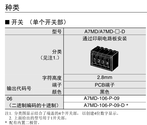 欧姆龙拨码开关,A7MD-106-P-09,欧姆龙拨码开关A7MD