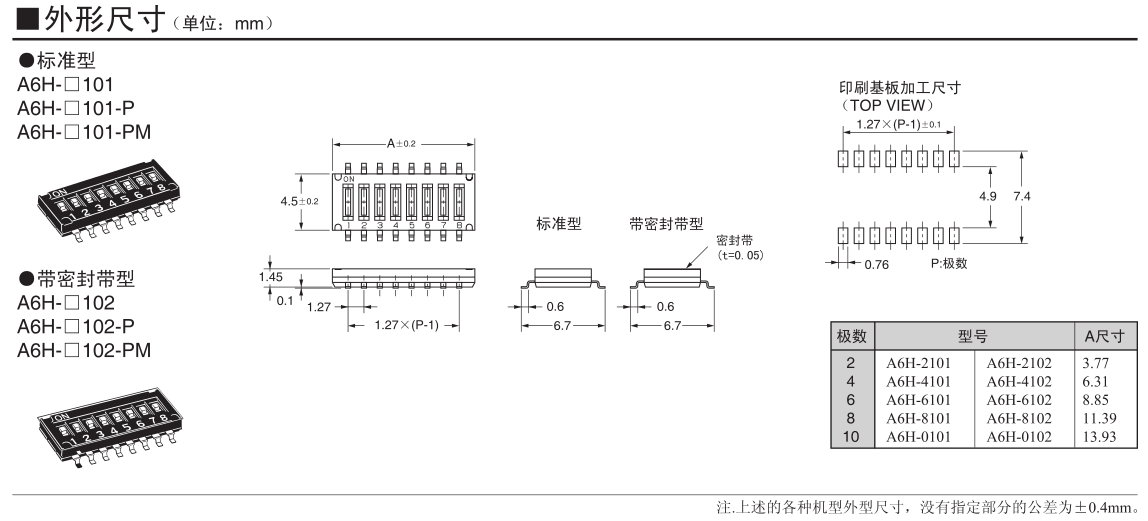 欧姆龙DIP开关, A6H-2101,欧姆龙DIP开关A6H