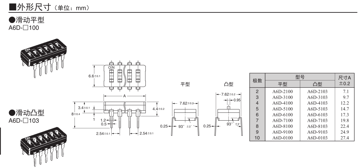 •  A6D-2100欧姆龙拨码开关