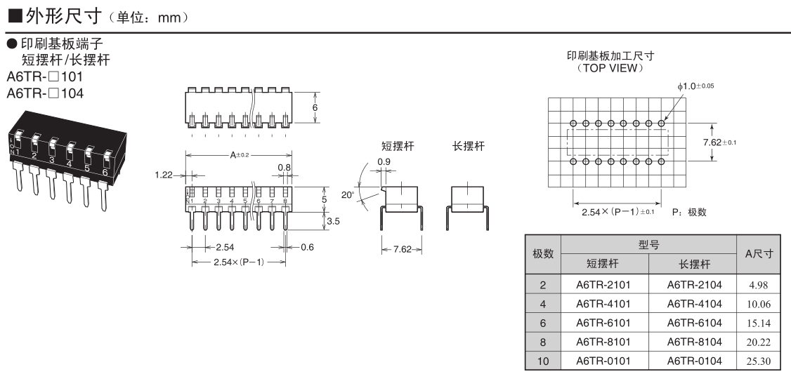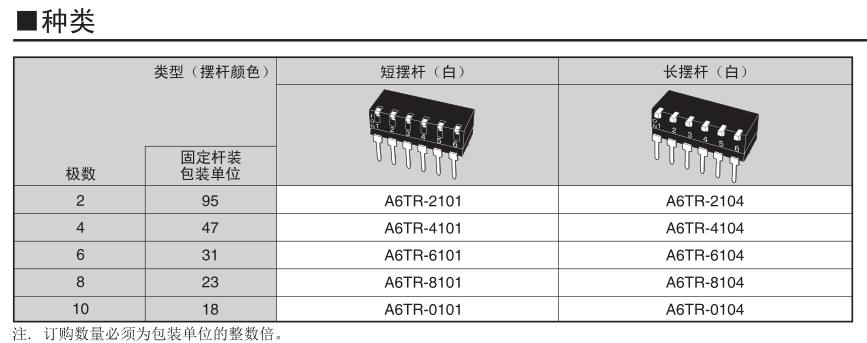 欧姆龙DIP开关,A6TR-4104,欧姆龙拨码开关A6TR