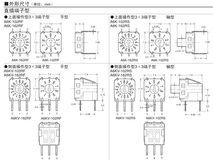 具有表面安装端子、直插型端子的两种型号对应。还提供侧面操作型产品