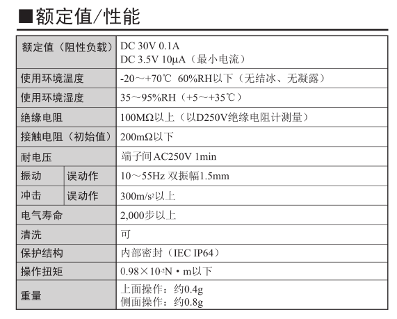 基座部插入成形,转动部分通过O环相当于密封构造IP64(IEC-60529)防止焊剂浸入,即使在尘埃较多或有水的地方使用也能确保高接触可靠性。