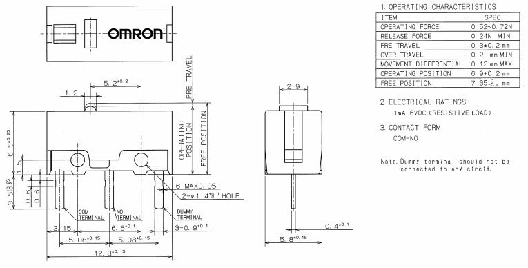 D2FC-F-7N(10M), 克力为:60+/-15G,寿命为1000万次;