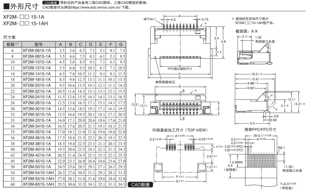推荐FPC/FFC 厚度,t = 0.3 mm。镀金型。