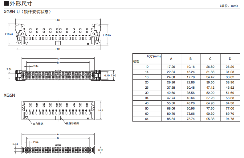 OMRON的带锁扣插座(XG5N-U),单手插拔即可,并且可以牢固地锁紧。
