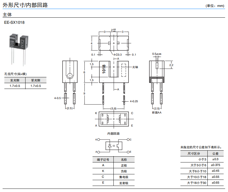 微型光电传感器EE-SX1018