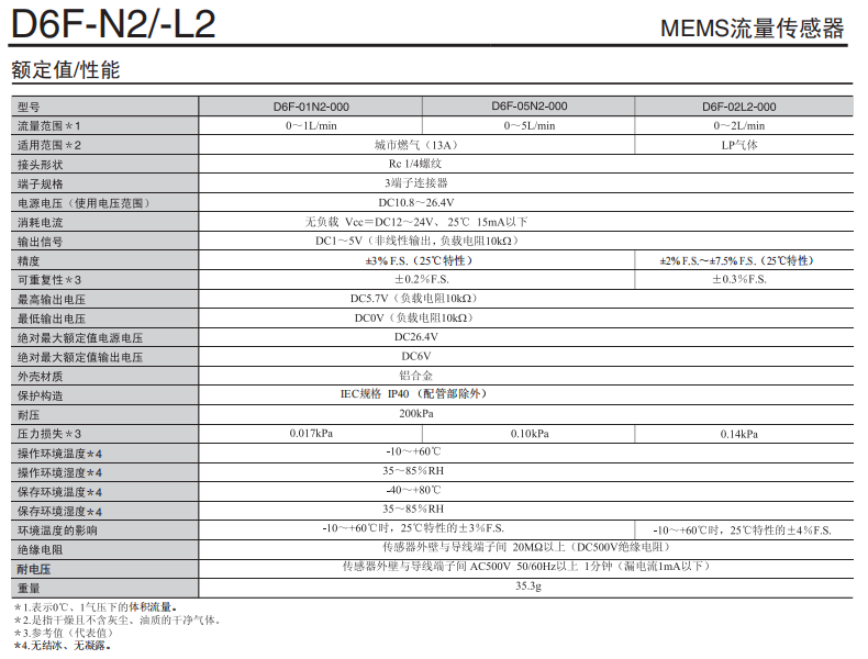 • D6F-N2/-L2燃气流量传感器